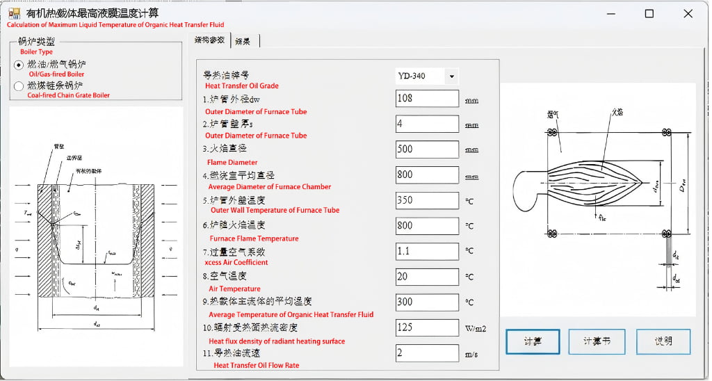 - Calculate the maximum liquid film temperature to prevent thermal oil degradation.
